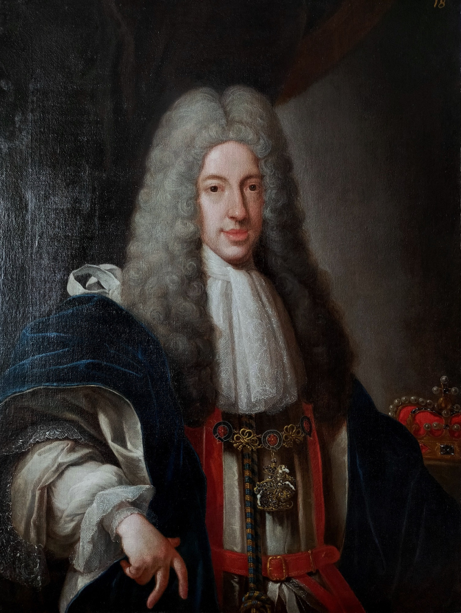 The originals of these portraits were painted by Francesco Trevisani (1656–1746) in 1719, at the time of the marriage between James III/VIII and Clementina. In the iconography of King Jan III’s granddaughter, this is her first official portrait as the wife of the claimant to the thrones of England, Scotland, and Ireland. Trevisani painted two other pairs of portraits of James and Clementina, one of which was for the painter’s patron, Cardinal Pietro Ottoboni, and the other for John Erskine, Duke of Mar. Of these portraits, only the original showing James has survived, and it is in the Palace of Holyroodhouse in Edinburgh. None of the three of Clementina has survived.